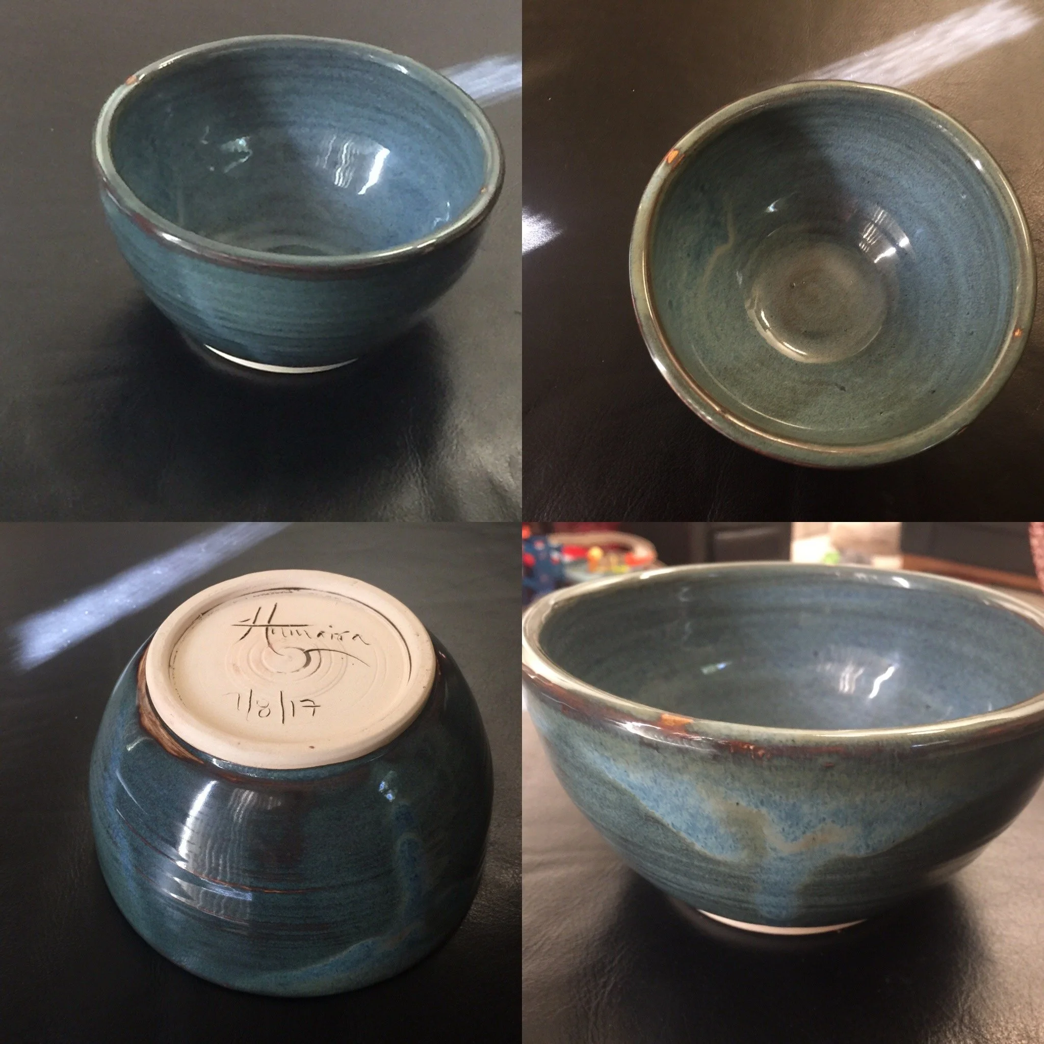 Ceramic bowl; Summer 2017. Although I’ve done handmade pottery, this was my first time throwing on a wheel. The glaze/color is always a surprise with ceramics, was very happy with the way this turned out - both with the color and the shape.