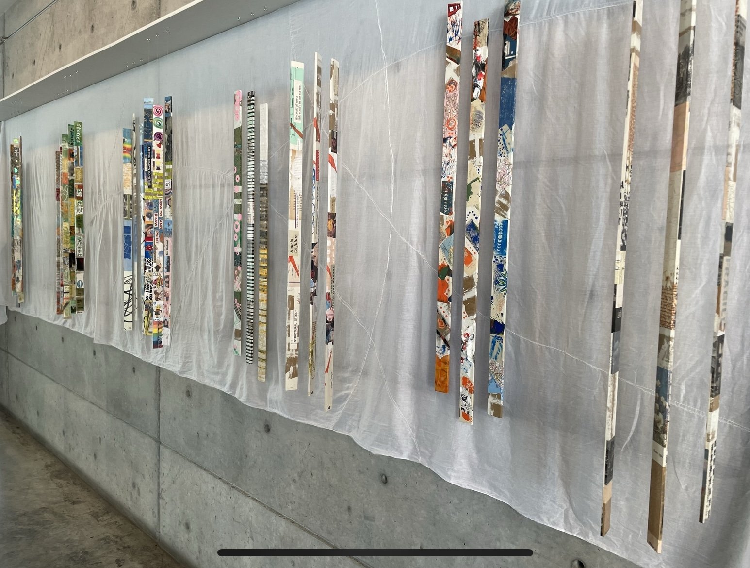 In Fall 2021 I took a Mixed-Media Workshop at CSMA with the artist, Shirley Bunger. Shirley had an unusual challenge for us. We had to create work in miniature on three wooden blocks about the size of a human palm and on three yardstick rulers as well. Shirley asked us to think of our pandemic experience and see if we could bring that to both these pieces. Both these pieces were exhibited in a show that ran in March-April 2022 at CSMA.